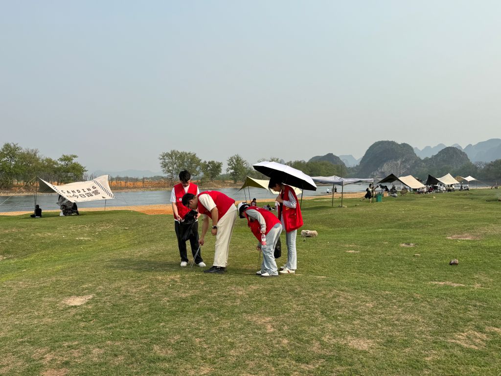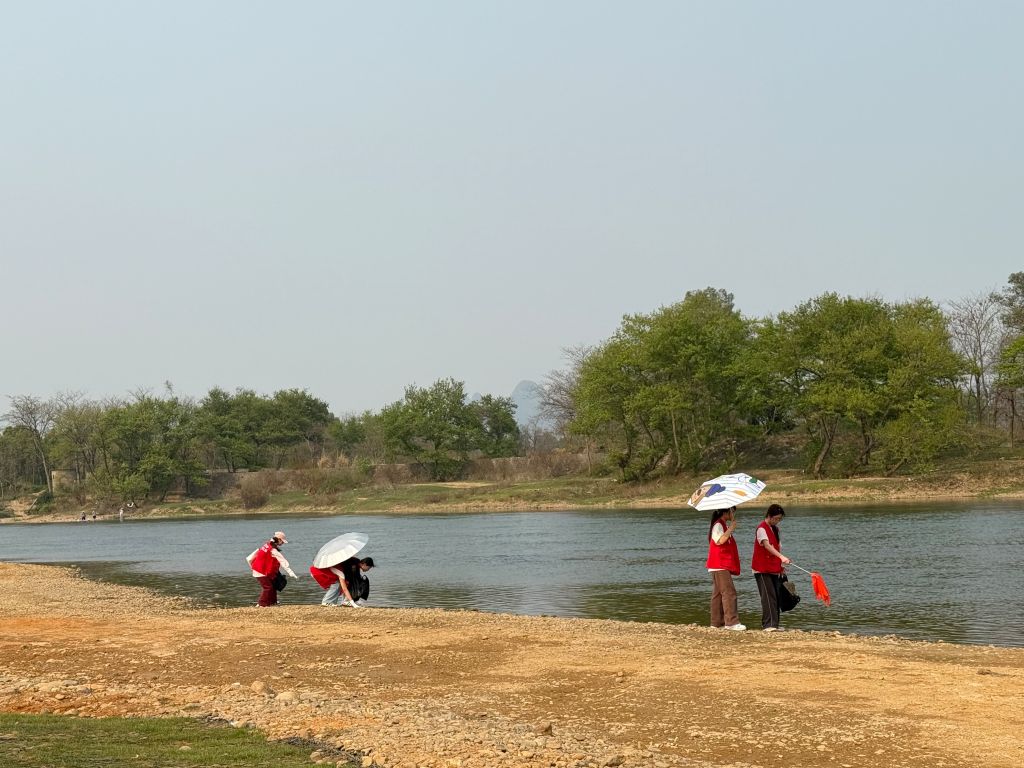 在清理垃圾的同时,志愿者们还向游客、村民宣传保护漓江生态的重要性,他们耐心地讲解垃圾分类、文明出游的知识,呼吁人们文明出游,自觉抵制乱扔垃圾、破坏植被和污染漓江水源等不文明行为。此次活动历时2小时,漓江沿岸的绿色草地像是经过一场“美容”,变得整洁有序,志愿者共清理垃圾40余袋。