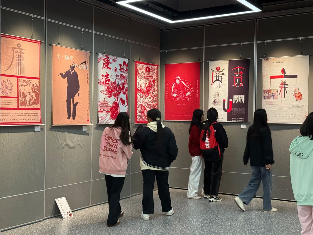 理论学习之后,师生们移步至嘉善楼艺术创意展厅中心,参观“党史中的廉洁之光”——庆祝新中国成立75周年暨清廉学校建设海报作品展。展出作品均为城市设计学院教师指导、学生创作,通过艺术与设计的手法,展现了雷锋、王进喜、张桂梅等共产党员心系人民、廉洁奉公的生动案例,激励广大青年学子铭记历史、不忘初心、廉洁从学,共同营造风清气正的校园氛围。