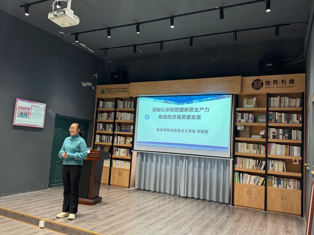 11月27日下午,我校马克思主义学院张新蕾老师在独秀书房思政家园为2024级数据科学与大数据技术专业的新生开展了一场以“深刻认识和把握新质生产力,推进经济高质量发展”为主题的讲座。讲座围绕当前中国经济转型的背景与需求,深入分析了新质生产力的内涵及其对经济高质量发展的推动作用。