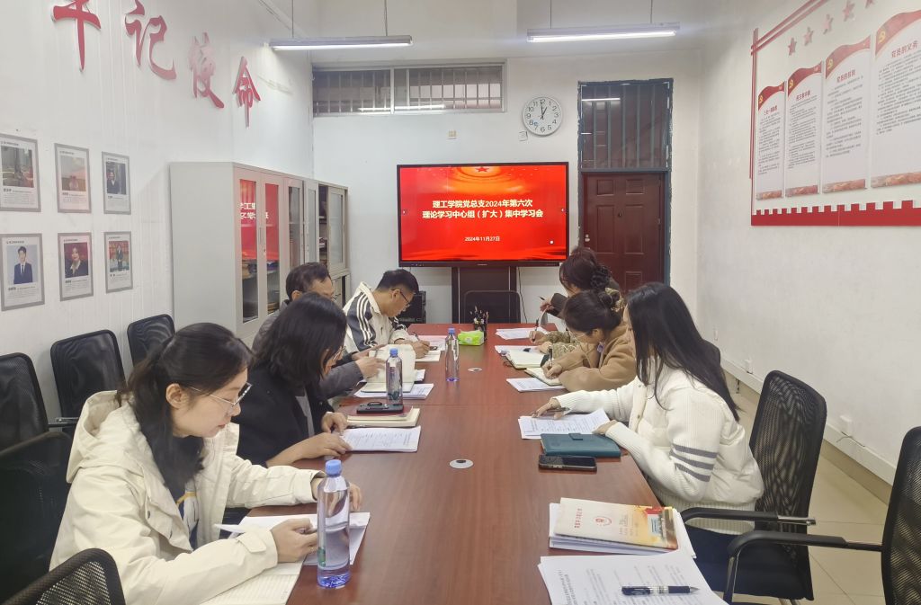 11月27日下午,理工学院党总支在理工学院党员活动室召开理论学习中心组(扩大)集中学习会,党总支委员、组织员、各支部书记、学院团总支书记参加学习,校党委委员、党委工作部部长列席会议。