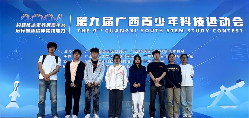 11月24日,自治区教育厅、自治区科协共同主办的第九届广西青少年科技运动会在南宁三中初中部青秀山校区圆满落幕,我校代表队荣获二等奖2项、三等奖1项,这是我校首次参加该项赛事并取得了优异成绩。