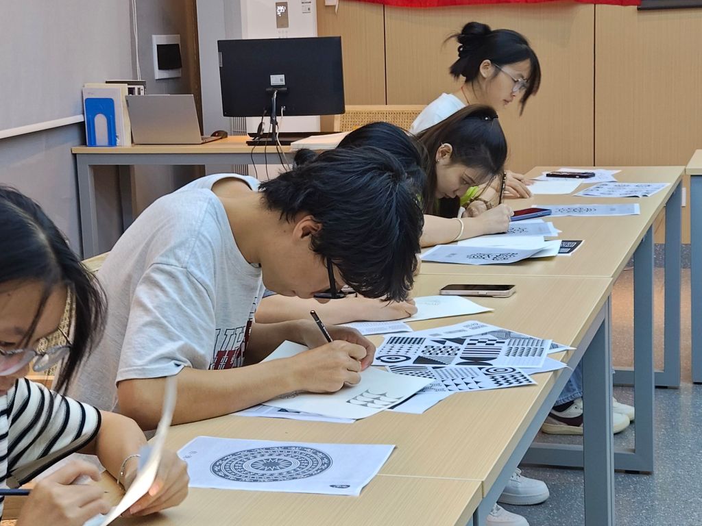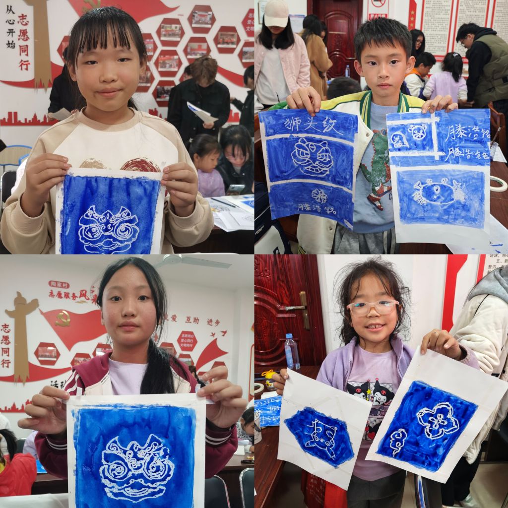 随后,学生党员和入党积极分子与小学生结成一对一的小组,化身为“小老师”,开始耐心指导小学生创作蜡染画。在 “小老师” 的悉心帮助下,小学生们充分发挥想象力,先用蜡笔精心描摹图案,再仔细染上颜料,经过一番努力,独具匠心的蜡染画逐一完成,一幅幅充满童趣的作品应运而生,花草鱼蝶、十二生肖等形象跃然纸上。学生们现场气氛热烈而欢快。