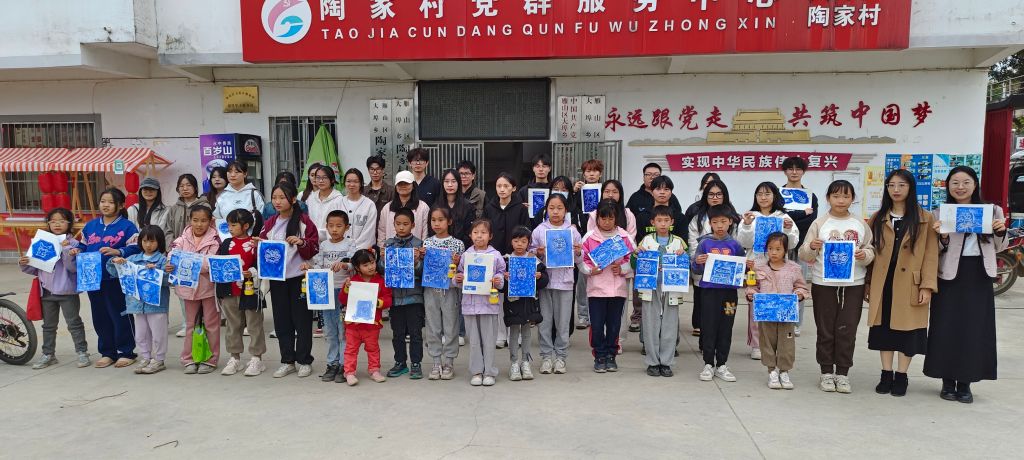 11月23日,理工学院学生社区党支部组织学生党员、入党积极分子到陶家村至善学堂开展美育浸润文化实践活动,向当地小学生科普非遗蜡染文化并指导他们亲手制作创意美术作品蜡染画。