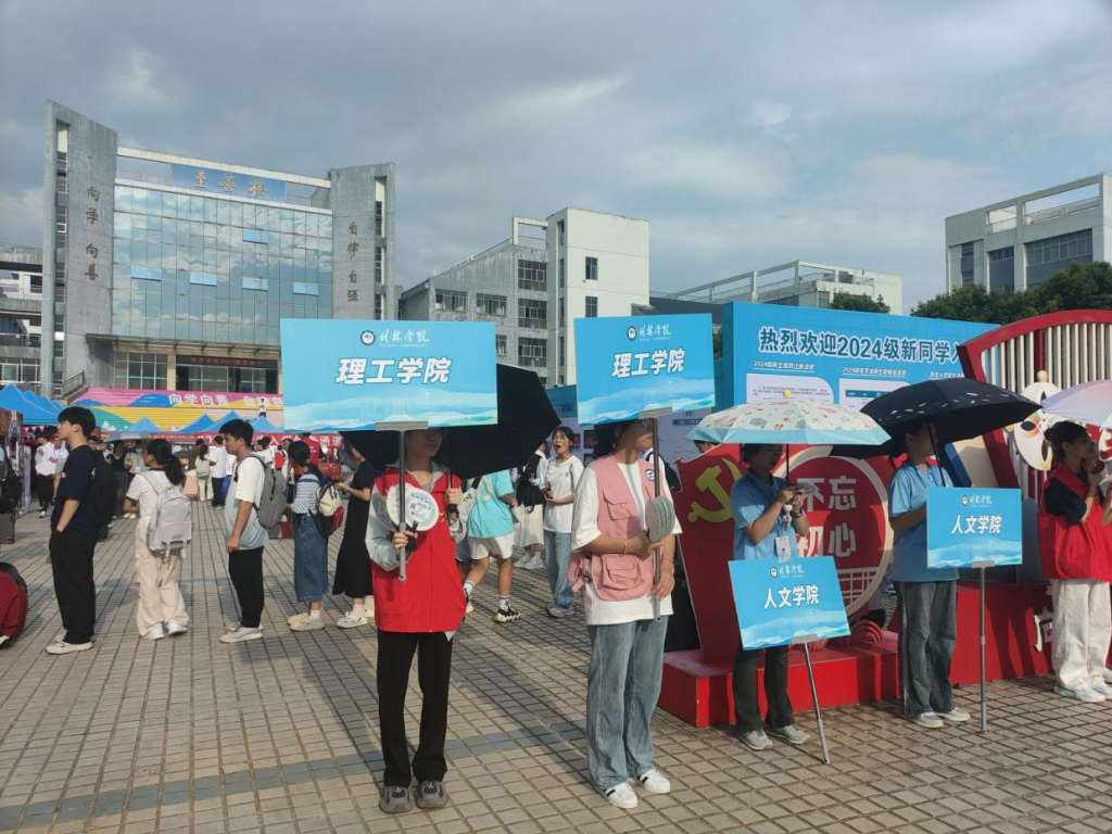 迎新志愿者举牌引导新生
