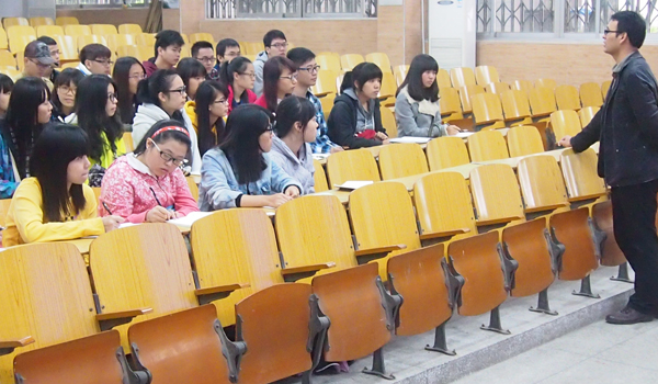 活动中,桂林市第五中学的唐增坤老师对“幂函数”一节内容进行了精彩的教学展示。课上,唐老师以生活实例引入,将抽象的幂函数定义具体化,激发学生兴趣的同时达到了教学内容的传授。针对班上成绩优异学生,唐老师除在课堂上展示其作业进行鼓励外,还强调这些学生课后应帮助成绩相对较弱的学生以达到共同进步的目的,巧妙的教育学生学会做人,学会做事。除此以外,唐老师还将“找茬”、“女神”“真实面目”等幽默风趣的语言引入课堂,活跃了课堂气氛,让学生感受到学习的快乐。课后,唐老师耐心地向见习的同学讲解了他的教学思路,并强调做一名合格教师最重要的是要有足够的信心,工作中有足够的底气,这样学生才会信服,所以建议同学们在大学要认真学习,不断充实和完善自己。