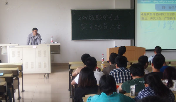 10月27日上午十点,理学系2011级数学与应用数学专业教育实习动员大会在1314教室举行,出席本次会议的有教研室负责人、实习指导老师以及2011级数学与应用数学专业全体学生。
