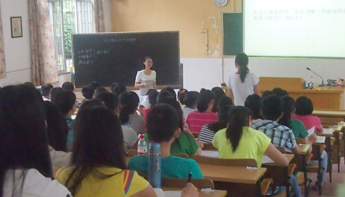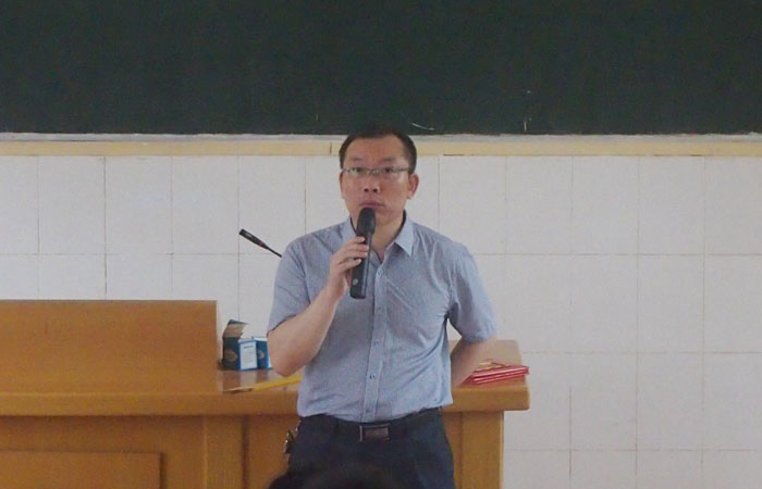 活动开始,桂林市数学学科带头人、桂林市第十八中学科研主任以伟男老师向同学们介绍了学校的背景、发展和数学学科新课改的特点。同时他就新课改存在的不足之处提出了建议:同学们在备课中要注意学会多角度的思考和准备,备课时要全面考虑问题。