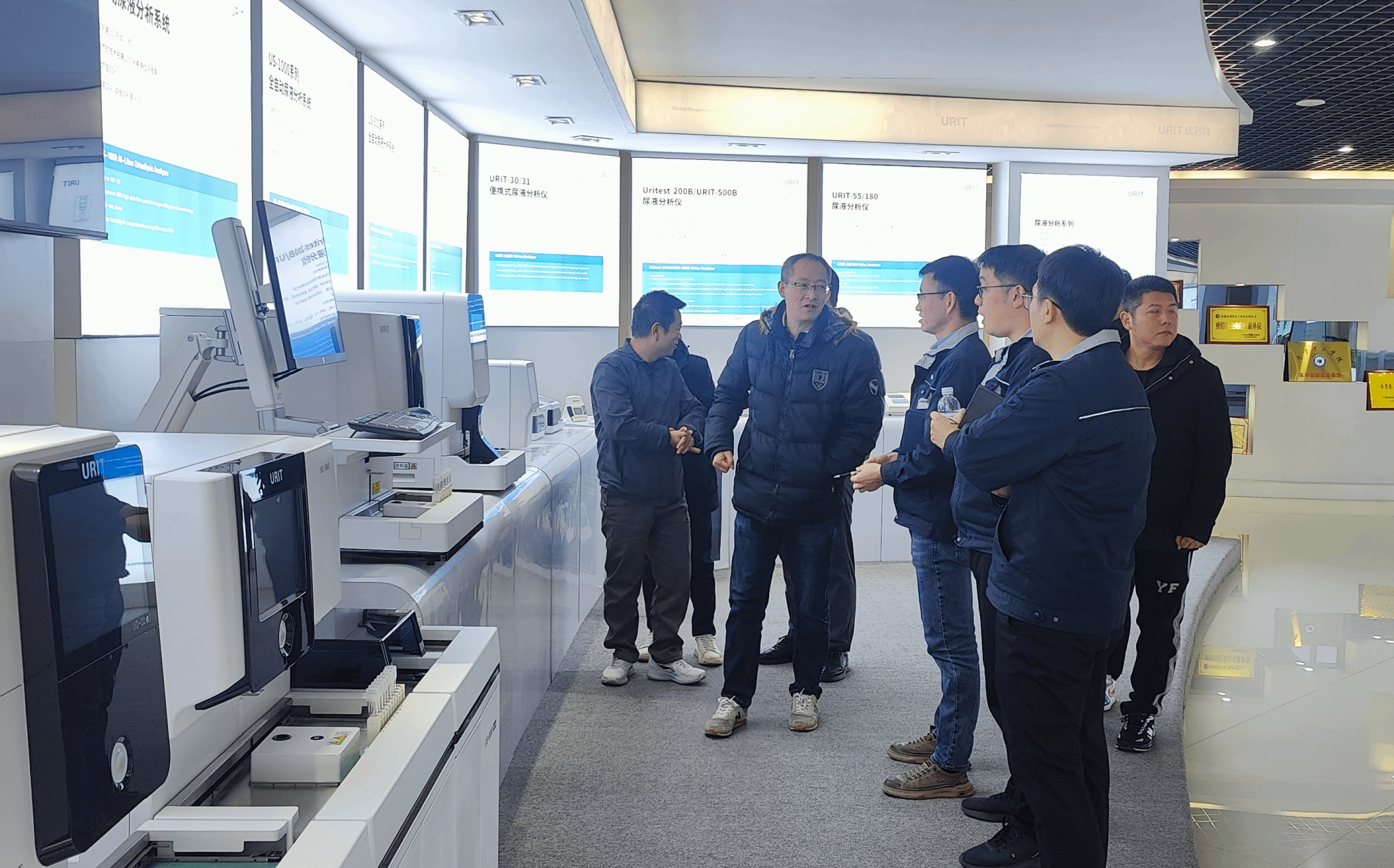 在优利特公司相关负责人的陪同下,老师们参观了企业展厅,详细了解了其发展历程、创新成果及产品体系。通过实地走访,老师们对本地医疗电子产业的技术前沿与人才需求有了更直观、深刻的认识。