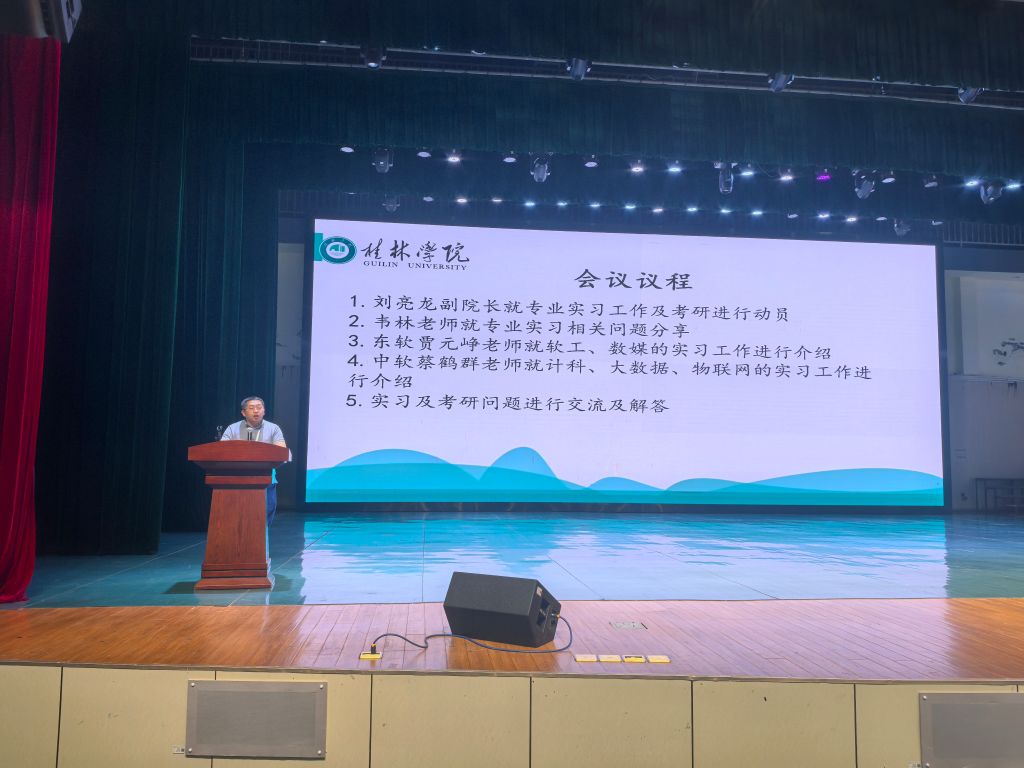 为做好2022级计算机类专业学生实习工作、提升专业实践能力,6月24日,信息工程学院在弘善讲堂召开实习动员大会。学院副院长、专业负责人、校企合作企业代表、实习指导教师及2022级计算机类学生参会。
