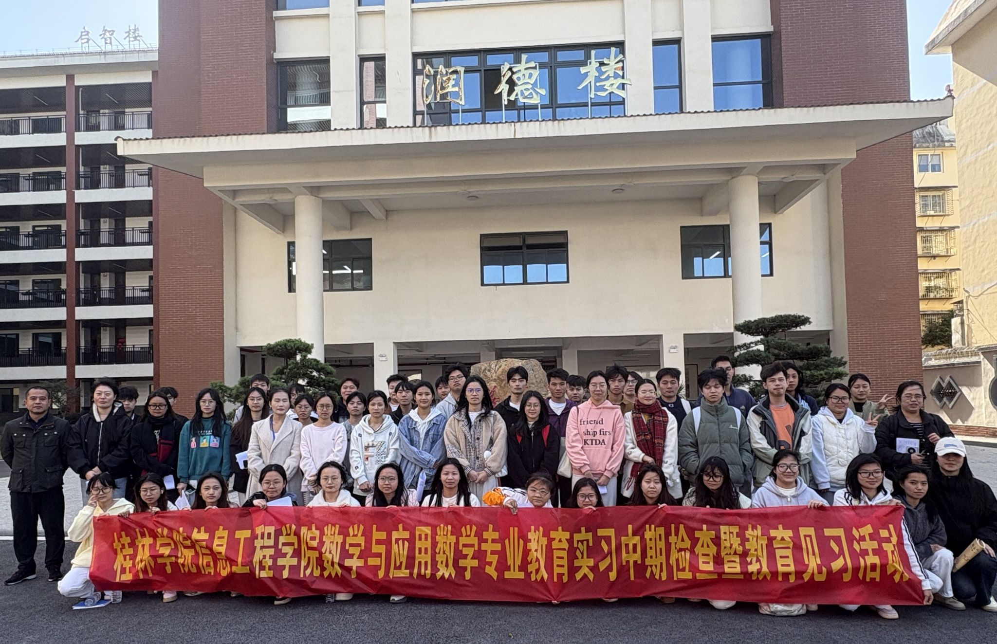 为深化师范生培养成效,强化教育教学实践能力,11月25日至26日,信息工程学院数学与应用数学专业师生先后赴桂林市第十二中学、临桂区四塘镇联办初级中学,集中开展2022级实习中期检查与2023级教育见习系列活动,持续推进校地协同育人走深走实。