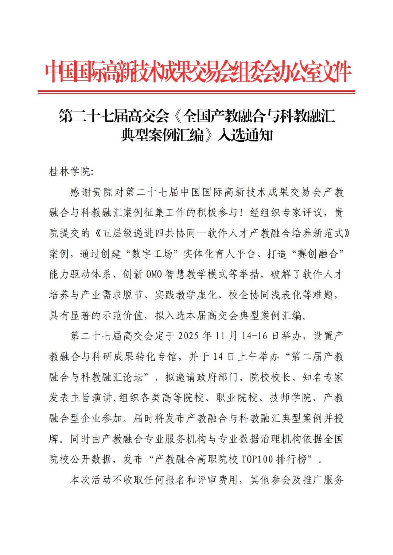 近日,从第二十七届中国国际高新技术成果交易会组委会传来喜讯,由我校与东软教育科技集团联合申报的产教融合案例《五层级递进 四共协同——软件人才产教融合培养新范式》成功入选《全国产教融合与科教融汇典型案例汇编》。这一成果标志着我校在深化应用型人才培养改革、推进校企协同育人方面取得突破性进展,获得国家级权威平台的高度认可。