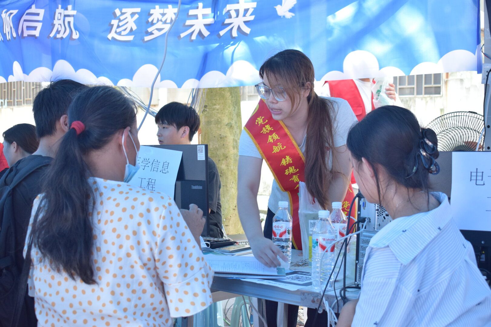 党支部志愿者正在为新生办理注册手续