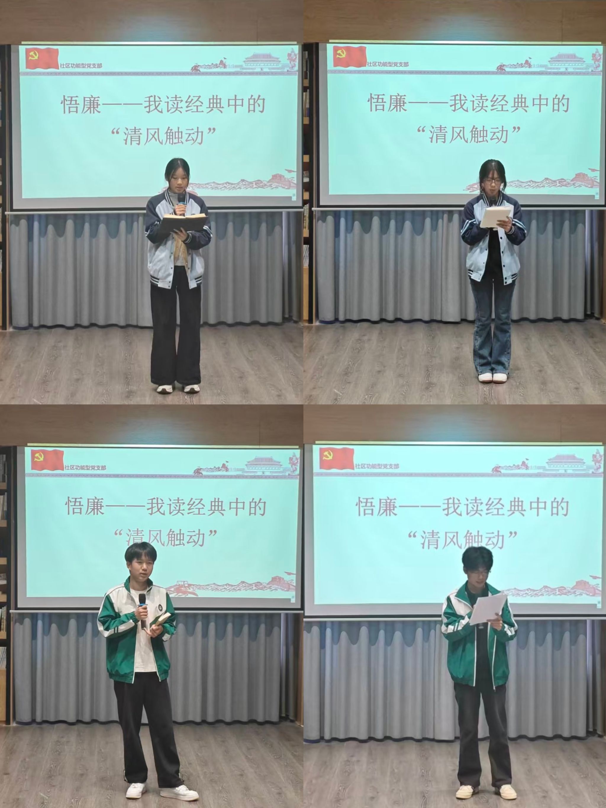 活动伊始,主持人以“廉话——红岩故事”视频导入,点明诵读经典中蕴含的“清风”深意。随后,党总支副书记聚焦“红色经典中的廉洁密码”展开微讲座,深入剖析领袖著作与革命先辈事迹中蕴含的崇高品格。从《毛泽东选集》中张思德“毫无自私自利之心”的奉献精神,到《习近平关于全面从严治党论述摘编》里“当官就不要发财,发财就不要当官”的铿锵箴言;从刘少奇《论共产党员的修养》对“慎独”“自律”的深刻阐释,到周恩来总理“十条家规”与补丁睡衣展现的克己奉公,再到彭德怀元帅“保公三诀”与方志敏《清贫》中“矜持不苟,舍己为公”的坚定誓言。一部部经典,一桩桩事迹,成为照见廉洁本色的生动教材。