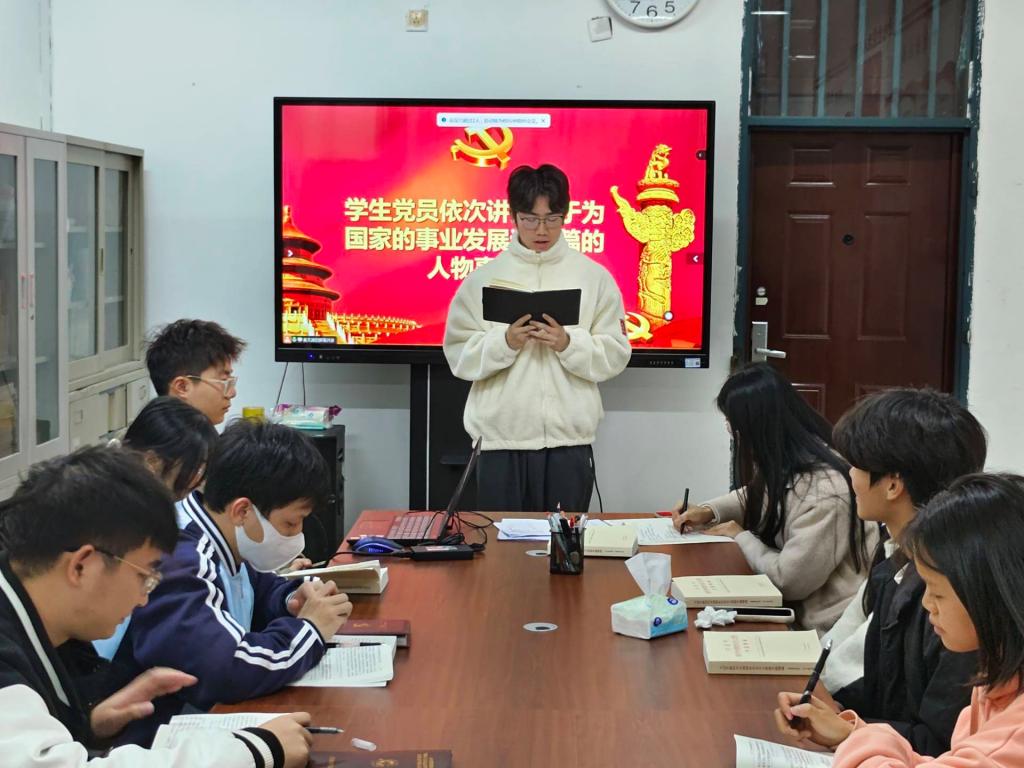 2021级大数据专业黄醒和2021级软工专业覃田杯两位学生党员依次发表了学习心得体会。活动中,2021级软工专业黄军胜讲解了为国家事业发展谋新篇的人物故事,他谈到钱学森把个人的命运与家国命运紧密相连实现了个人价值,激励着大学生要树立远大的理想信念,将个人发展与中国梦相结合,努力学习实现个人价值。2022级大数据专升本的凌兰花分享了袁隆平为杂交水稻科研事业奋斗终生,为世界人类造福祉的光辉事迹,激励学生党员要立足个人岗位为人民谋幸福。