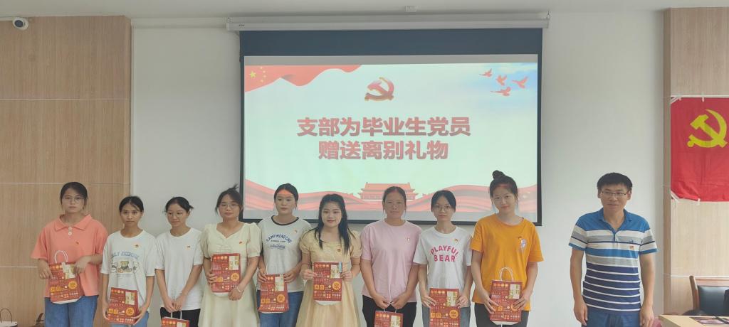最后党总支副书记刘显林为毕业党员寄语并送上祝福礼物,希望大家继续保持认真严谨的态度,牢记党员初心与使命,牢记党的宗旨,发挥党员先锋模范作用,将个人成长的“小我”融入到祖国发展的“大我”之中,实现人生价值与理想。