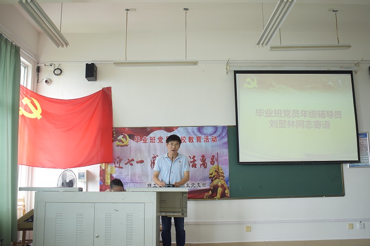 毕业班党员年级辅导员刘显林同志对毕业班党员送出寄语,希望他们能在未来的工作生活中前程似锦,毕业了也要常回来看看,怀揣一颗感恩之心,理工学院这个大家庭永远是大家的港湾。接着,贺娜同志带着全体党员重温入党誓词。