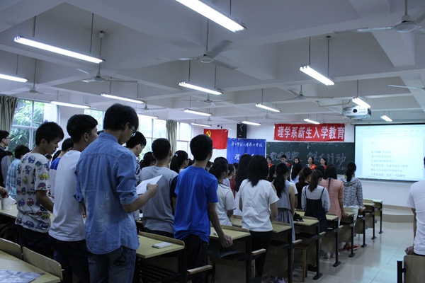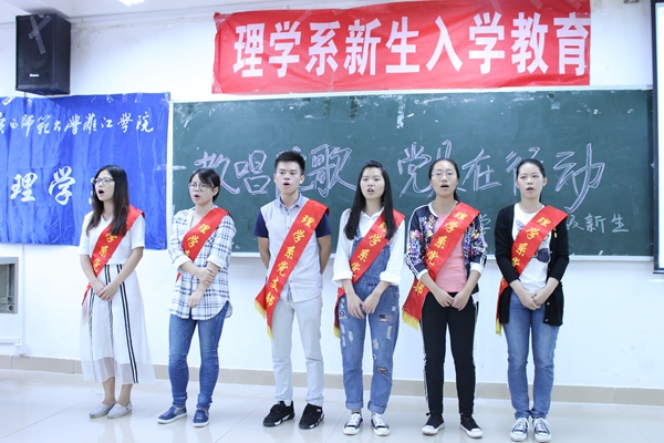 近日,理学系第一学生党支部组织入党积极分子到理学系各年级各专业教2015级新生学唱院歌--《造就人才的殿堂》。此次活动主要是让新生了解学校办学理念和文化特色,融入大学,迎接生活的新篇章。