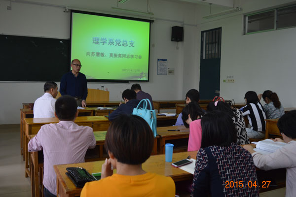 为深入学习苏慧敏、莫振高同志的先进事迹,弘扬新时期人民教师的高尚师德和无私奉献精神,4月27日上午十点半,理学系在教学楼2201教室召开向苏慧敏、莫振高同志学习会,理学系全体教师参加了会议。