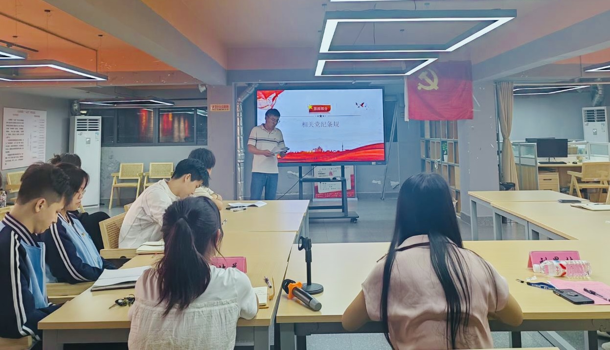 6月16日,信息工程学院学生社区党支部于一站式学生社区党团活动中心举办廉洁专题党课暨警示教育活动。活动由党总支副书记主讲,支部全体党员及入党积极分子代表参与,旨在通过理论讲解与案例警示,强化党员廉洁自律意识,筑牢思想防线。