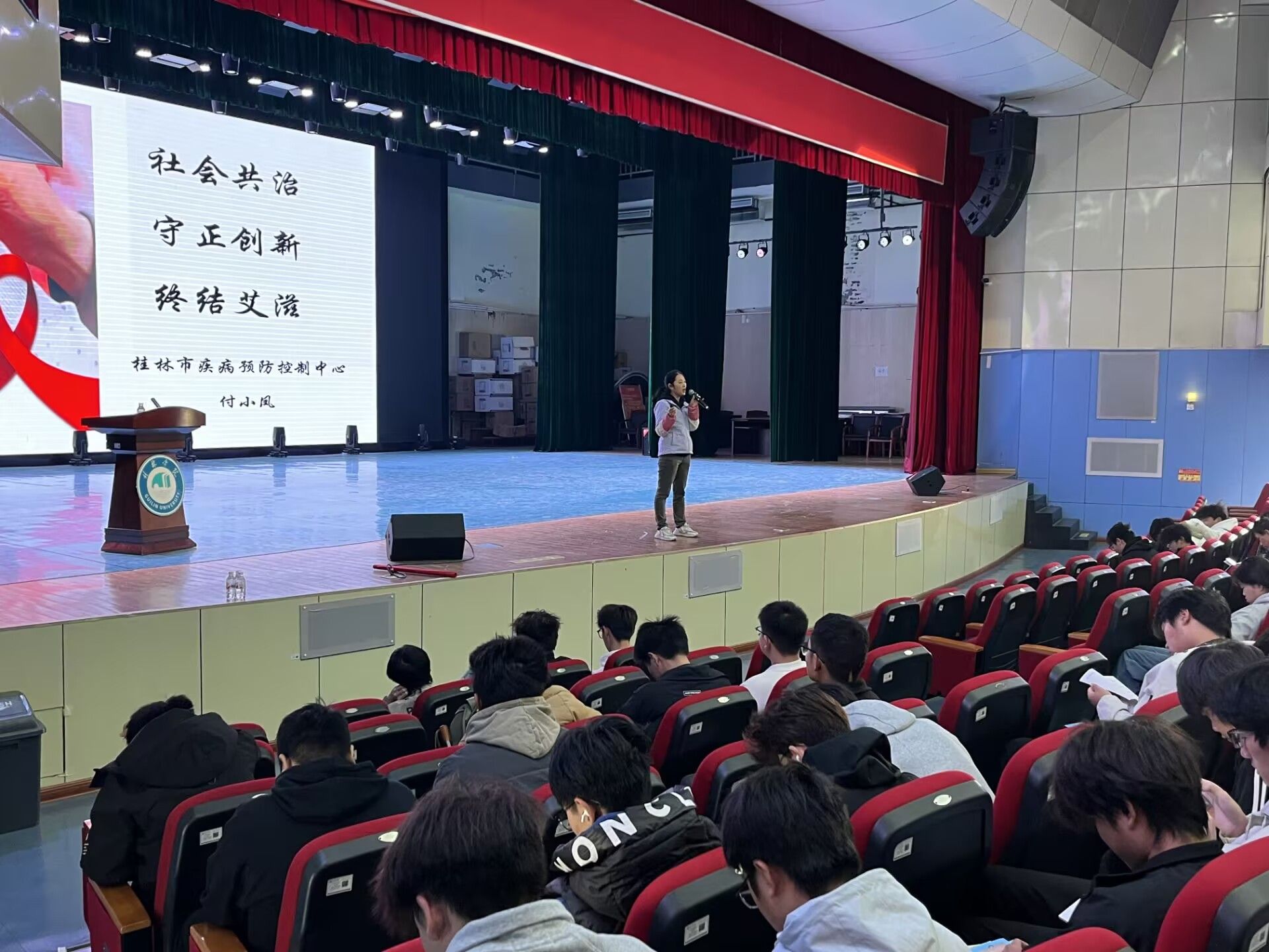 为提升新生艾滋病防治意识,筑牢校园健康安全屏障,11月29日上午,信息工程学院在弘善讲堂举办“为青春护航,远离‘艾梅淋’”专题讲座。本次活动特邀桂林市疾控中心艾滋病防制科付小凤副主任医师担任主讲,学院2025级全体新生参加学习。