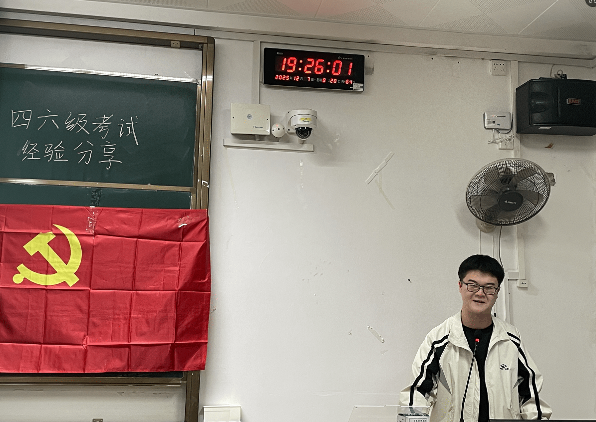 分享会邀请了支部内多位在四六级考试中取得优异成绩的学生党员和积极分子代表交流经验。2023级电子信息工程专业积极分子梁瑞昌首先结合自身备考经历,系统分享了英语阅读的解题策略与时间分配技巧。同专业积极分子陈欣则围绕高效背词方法、实用备考工具及阅读题型解析等内容进行了细致讲解。优秀学生代表彭博帅重点介绍了“7天冲刺四级考试”的高效复习计划,为临近考试的同学提供了切实可行的备考思路。