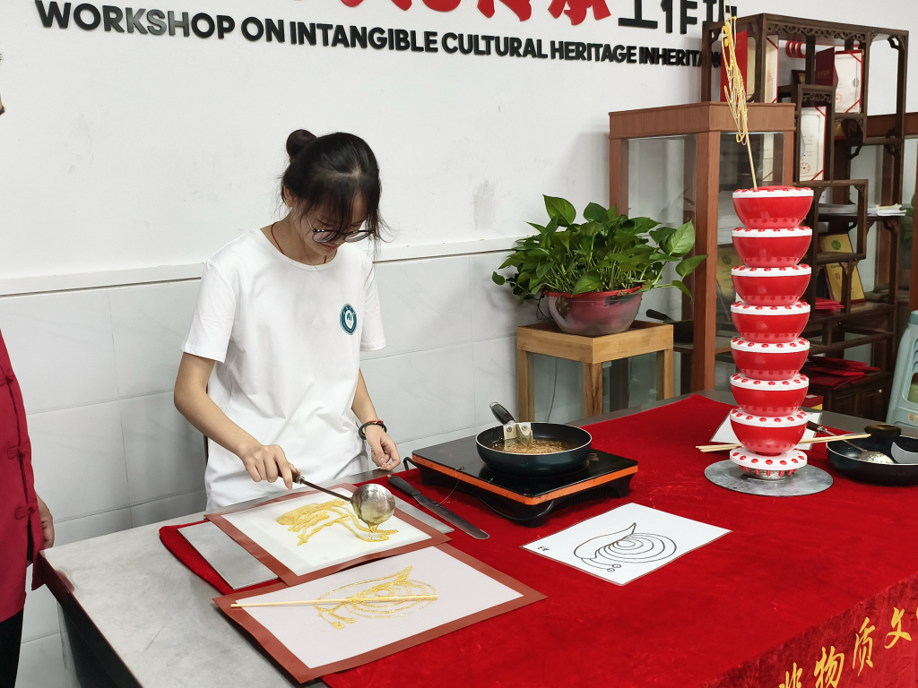 队员们体验非遗糖画制作