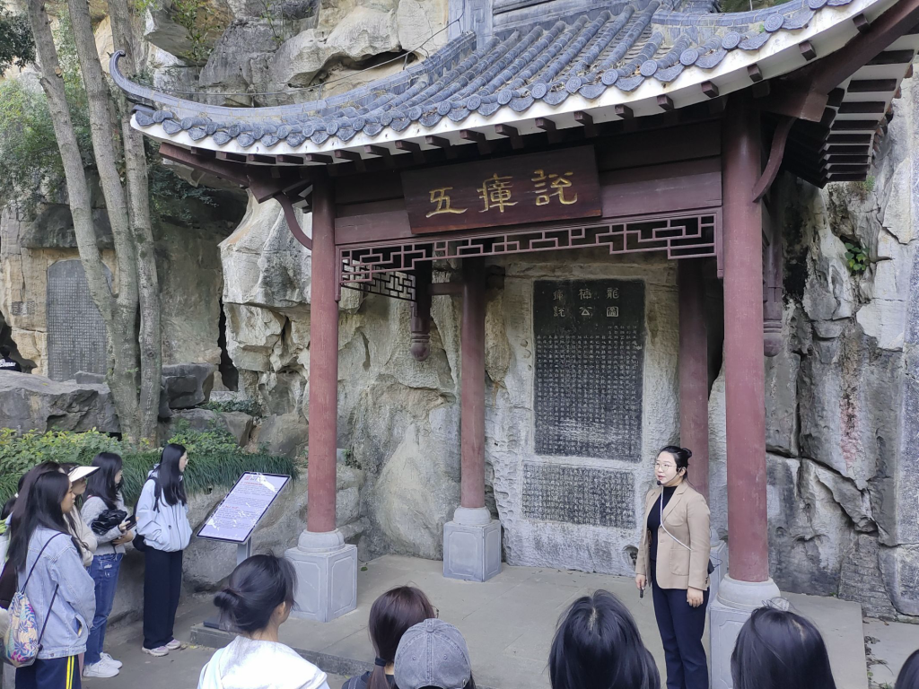 在讲解员的引导下,大家一起参观了“龙图梅公瘴说”、“世节堂”、“摩崖石刻林”、“拓园”等展区,在倾听讲解的过程中,同学们通过近距离接触,实地了解中华历史传统文化,感受着千年历史带来的震撼。例如宋代“朱希颜跋刻龙图梅公瘴说”这一石刻,不仅对当时的社会进行了深刻的批判,也对官员提出了警示,强调了廉洁的重要性,彰显出作者梅挚浓厚的爱国之情。这些石刻是古人留给后人的宝贵文化遗产,更是对严守廉洁爱国底线长远发展的谆谆教导。