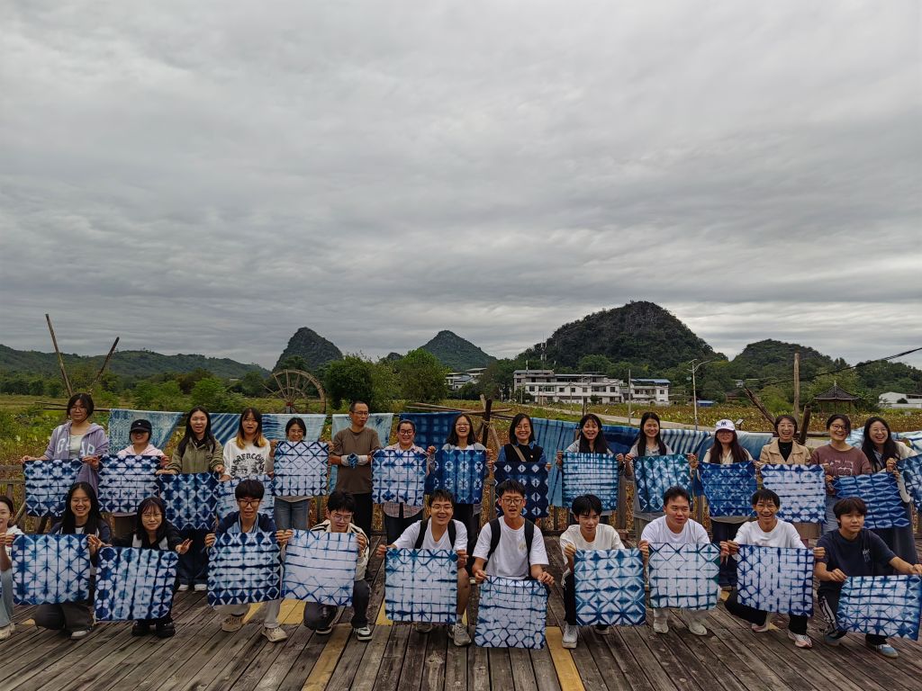 在非遗技艺体验环节,老师和同学们体验了扎染和雕版彩色套印。当地非遗技艺传承老师进行当面现场教学,并耐心介绍非遗技艺的历史由来和创新传承发展,大家仔细聆听并纷纷体验。当一张张作品展现在眼前时,大家纷纷和自己的非遗佳作合影,捕捉非遗文化的美好。