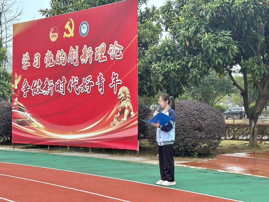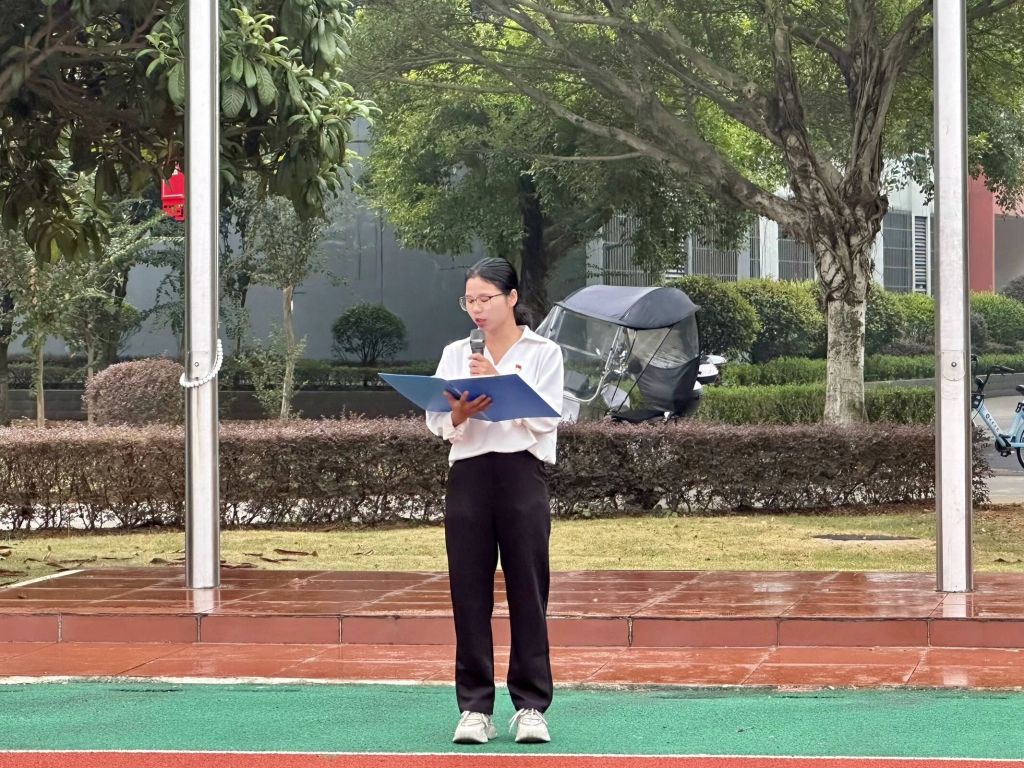 国旗下的讲话环节,2022级数学与应用数学专业预备党员唐晶茹号召广大同学要深刻认识铸牢中华民族共同体意识的重要性,不断增强民族认同和文化认同,积极践行社会主义核心价值观,为实现中华民族伟大复兴的中国梦贡献力量。