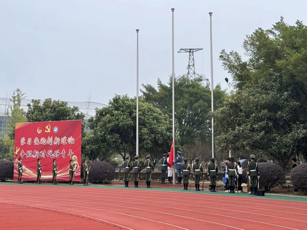 10月14日清晨,理工学院于田径场举行以“铸牢中华民族共同体意识”为主题的升旗仪式。理工学院党总支书记、党总支副书记、各年级教师代表以及理工学院全体学生参加升旗仪式。