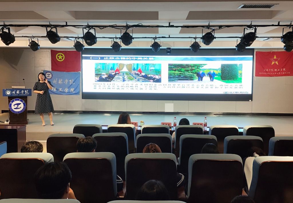 贺春先老师以“当代国际形势与中国外交”为主题,分析了当前的国际热点问题并解读我国目前的外交政策。她具体解读了止跌止稳的中美关系、反复上演的巴以冲突、久拖未决的乌克兰危机等问题。随后,贺春先老师从国际问题谈到中国坚持独立自主的和平外交政策,讲述了中国在维护国家主权、世界和平,推动构建人类命运共同体等方面做出的贡献。通过本次理论授课,青马班成员汲取了“弱国无外交”的宝贵经验,认识到只有增强忧患意识,树立全球观念,学会用世界的眼光看问题,关心世界和平与发展,才能为全球治理体系改革和完善提供中国方案,为中华民族伟大复兴做出更大贡献!