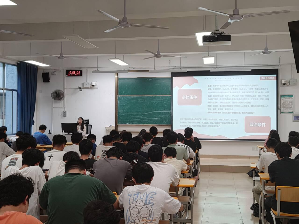 为进一步激发大学生爱国情怀和从军热情,强化大学生国防观念,向毕业生宣传入伍政策,5月26日,理工学院毕业班辅导员组织开展2024年大学生征兵动员宣讲会。