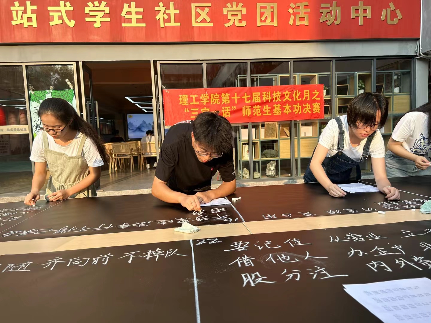本次比赛是理工学院第十七届科技文化活动月师范生“三字一话”基本功大赛系列活动之一。初赛环节,202位选手按照赛制要求提交了廉洁主题硬笔书法作品,经过筛选,24位选手入围决赛,现场书写粉笔字进行角逐。