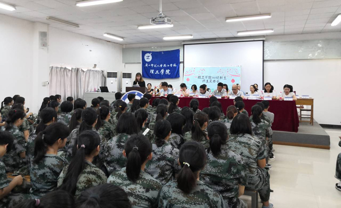 9月16日下午,理工学院在艺术工厂132教室举行2019级师生见面会,参会的有全体院领导、无教学任务的专任教师、全体辅导员、行政秘书、教学秘书以及2019级新生,活动由2018级数学与应用数学专业的赖秋伶主持。
