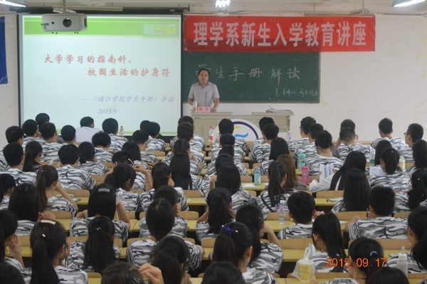 近日,理学系邀请了孙俊和周杰两位处长分别为理学系育才校区和雁山校区的2015级新生做讲座,内容为解读《漓江学院学生手册》。