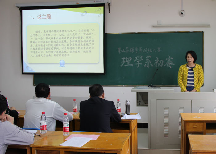 学院第五届辅导员技能大赛初赛以主题班会说课的形式开展,由各系负责组织选拔优秀的选手参加学院辅导员技能大赛。为了办好此次活动,理学系领导高度重视,在赛前进行了活动动员、说课培训并逐一对辅导员的说课稿进行了指导,有针对性地提出了修改意见。