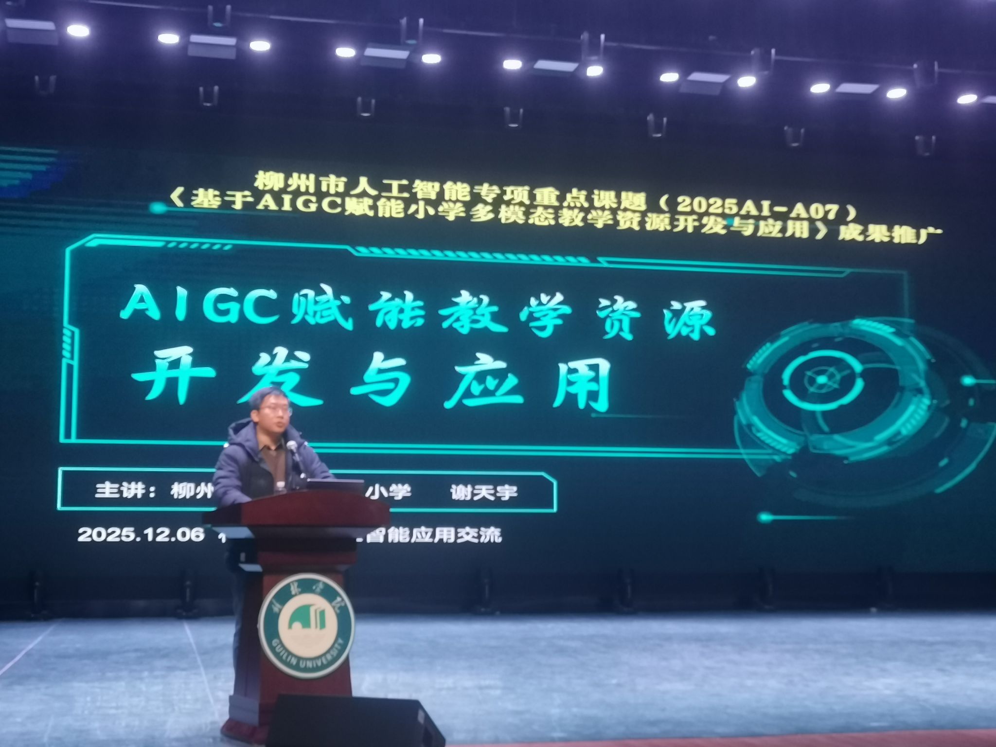 讲座中,谢天宇围绕人工智能教育发展概况、人工智能的教育内涵、AIGC多模态资源开发技术解析及常见AI软件工具使用案例操作展开分享。在“人工智能教育发展概况”部分,他结合行业报告与实际案例,梳理了AI技术从辅助教学到深度融合教育场景的演进历程,指出AIGC已成为推动教学资源创新的关键力量。谈及“人工智能的教育内涵”时,他强调AI不仅是工具,更能通过个性化推荐、智能评测等功能,重构“教”与“学”的互动模式,为教育提质增效提供新路径。在“AIGC多模态资源开发技术解析”内容方面,系统拆解文本生成、图像创作、视频剪辑等多模态教学资源的开发逻辑体系,并通过流程图清晰呈现技术实现路径与关键节点。在“常见AI软件工具使用案例操作”环节,结合教学场景实际,展示了一些常见AI工具辅助教案撰写、设计教学插图、剪映AI功能制作教学短视频等典型应用实践。现场同学们专注聆听、认真记录,不少人拿出手机拍摄操作步骤。