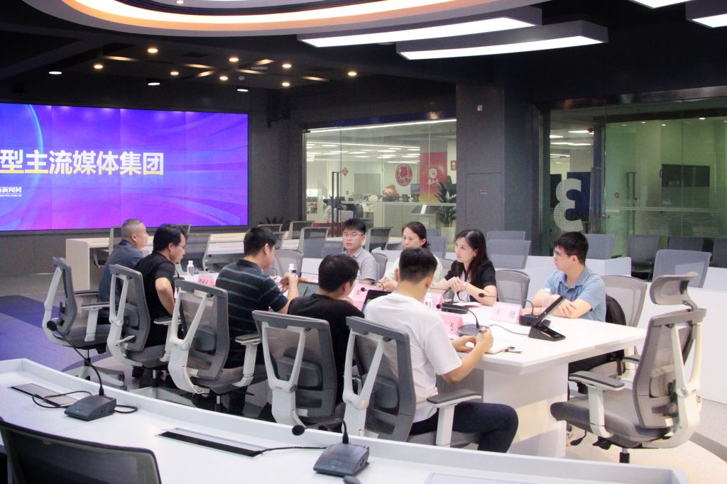 在广西云数字媒体集团有限公司编委、媒体融合发展中心主任兼首席运营官李伟国的带领下,调研组先后参观了广西日报报史陈列馆、广西新闻网运维中心、广西云全媒体演播厅、发布厅以及广西云融媒体指挥中心。通过指挥中心可视化大屏,相关工作人员介绍了广西云推进媒体深度融合的发展情况介绍,详细解读了广西云数字媒体集团各大版块业务情况及在融媒体宣传中取得的良好成效。在座谈会上,双方针对融媒体中心建设、全媒体宣传项目合作、网站运维、学生实习实践等方面进行了深入的交流探讨。