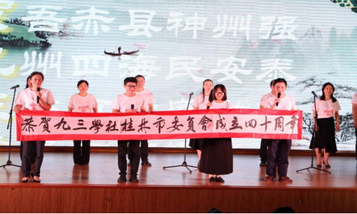 庆祝大会上,九三桂林学院支社社员与广西师范大学支社、桂林医学院支社、临桂一支社社员共同表演《九三学社桂林市委员会成立四十周年感怀》诗朗诵、《相亲相爱一家人》歌曲演唱,获得与会领导和观众的热烈掌声。