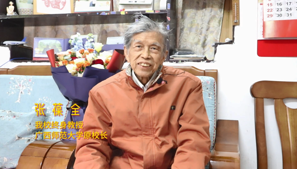 在特别致敬环节,学校终身教授张葆全为大家录制了新年祝福视频,勉励全校师生在新的一年里,迈上新征途,奋发向上,攀登险峰,饱览无尽春光。