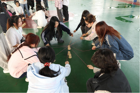 随后,精彩纷呈的素拓游戏拉开帷幕。在“传阅千里”游戏中,成员们排成一列,通过肢体语言小心翼翼地传递信息,尽管过程中状况百出,引发阵阵欢笑,但大家始终保持专注,努力准确传递信息,在欢乐中培养了默契与沟通能力。“合力建塔”环节极具挑战性,团队成员需共同拉动绳索,控制吊钩将积木层层堆叠,每一次积木的成功搭建都凝聚着团队的智慧与协作。大家不断调整策略,总结经验,深刻体会到团队协作和分工明确的重要性。“数字抱团”游戏则将现场气氛推向高潮,成员们根据主持人喊出的数字迅速组队,反应敏捷,动作迅速,在奔跑与欢笑中增进了彼此间的熟悉与信任。