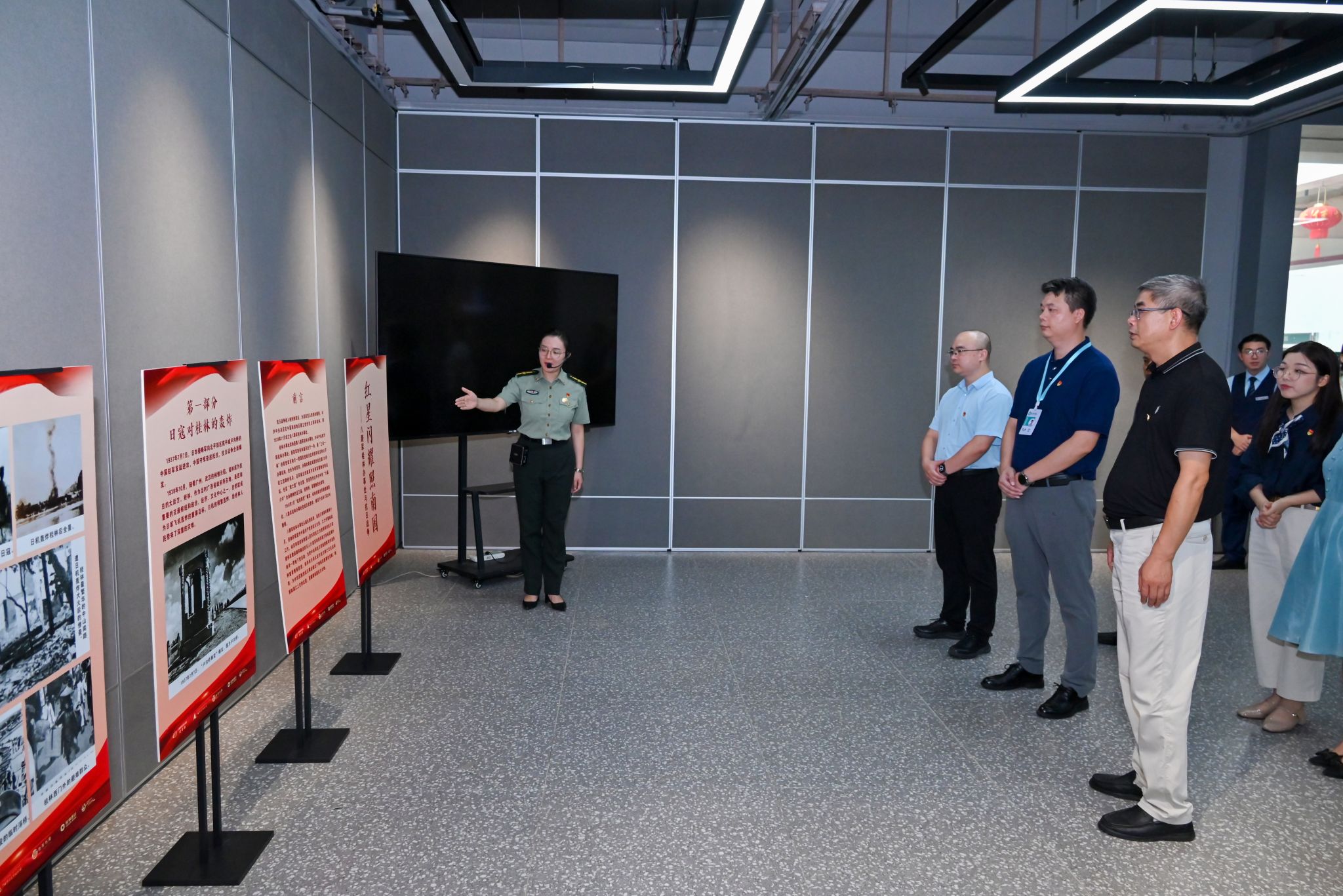 为纪念中国人民抗日战争暨世界反法西斯战争胜利80周年,9月11日上午,“红星闪耀照南国——八路军桂林办事处与抗日战争历史文物图片展”在学校艺术创意展示中心隆重开幕。本次展览由八路军桂林办事处纪念馆主办,校党委承办,校党委宣传部、学生工作处(部)、后勤保卫处、教育与音乐学院、红话筒理论宣讲辅导员工作室及桂林银行叠彩支行协办。八路军桂林办事处纪念馆馆长时建红,学校副校长蒋毅,桂林银行叠彩支行行长蒋扬帆及相关负责人出席开幕式,首批观展的70余名师生代表参加开幕式。