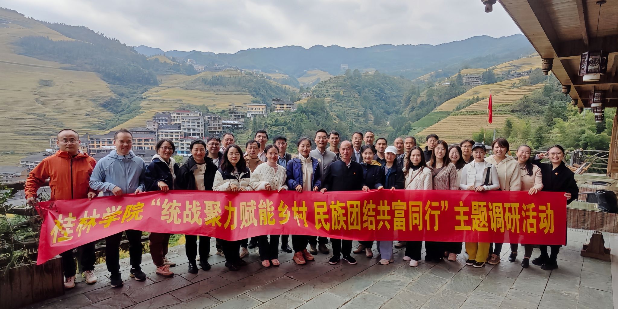 为进一步加强校地融合,发挥统一战线优势,助力乡村振兴,10月24日,学校组织各民主党派代表、党外知识分子、知联会会员代表等赴龙胜各族自治县开展“统战聚力赋能乡村 民族团结共富同行”主题调研活动,学校思想政治工作委员会副主任孙中会、党委统战部负责人参加调研。