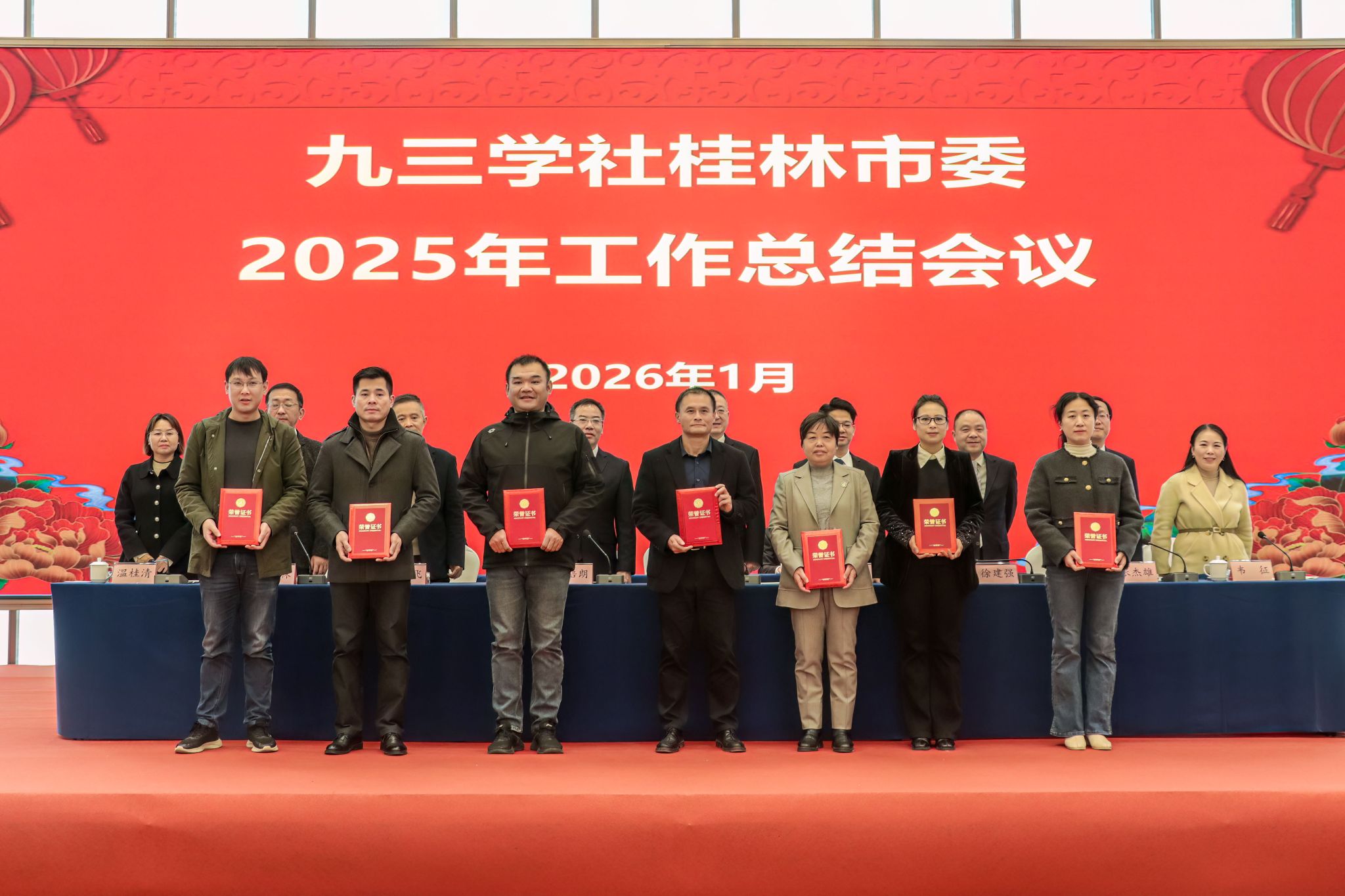 1月10日,九三学社桂林市委召开2025年工作总结表彰会,会议全面回顾过去一年的工作成效,系统擘画未来发展蓝图。桂林市政协副主席、市社会主义学院院长卢全喜,九三学社广西区委秘书长罗培朗,中共桂林市委统战部副部长、市侨办主任徐建强莅临指导,社市委主委胡天峰出席会议并讲话,副主委张伟林主持会议。九三学社桂林学院支社(以下简称“支社”)主委何玲率全体社员参会,与全市150余名九三学社社员共赴盛会。