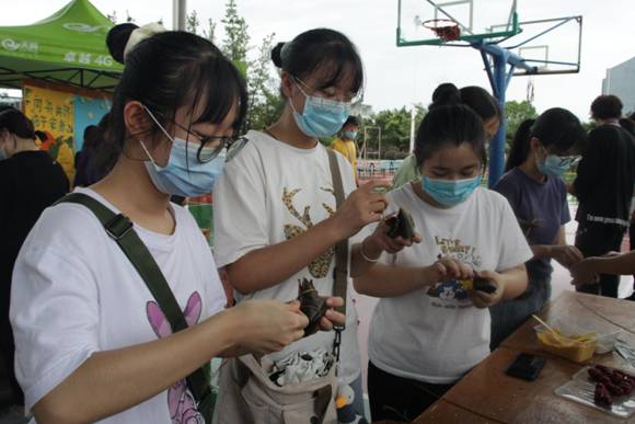 6月25日,为弘扬民族精神,传承中华传统,让同学们更好地了解、体验传统文化,校学生会在风雨篮球棚举办“同舟共济端午安康”端午节活动。