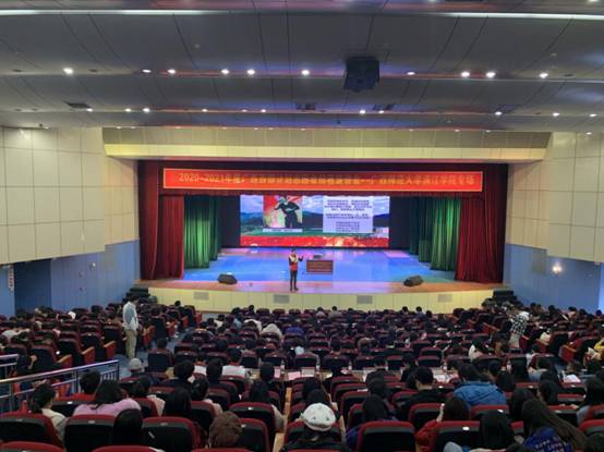 本次报告团由共青团广西区委项目办西部计划专员张丰、共青团广西区委项目办部长助理黄千程、江苏科技大学在读博士研究生会主席毕克、共青团天峨县委员会办公室干部唐燕山、富川瑶族自治县麦岭镇初级中学支教语文老师盘丹组成。我校学生事务部部长蒋远宏、学生事务部副部长/校团委书记王瑞、校团委全体老师以及各学院毕业班辅导员,毕业班学生代表500余名同学参加了此次宣讲会。