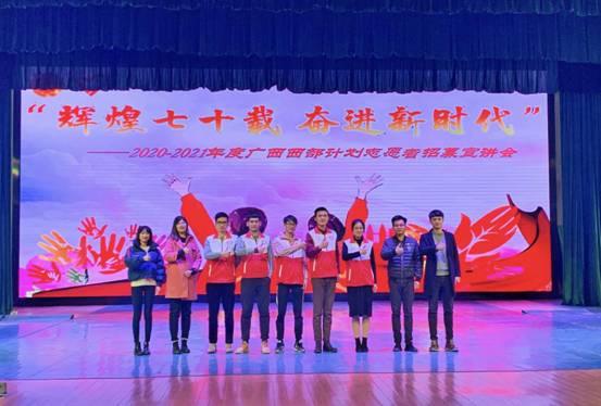 为进一步促进我校志愿者服务事业的发展,充分展现我校青年志愿者的风采,广泛宣传志愿服务文化,大力弘扬“奉献、友爱、互助、进步”的志愿者精神,引导和动员更多青年参与志愿服务,根据团区委西部计划宣传招募工作的整体安排,共青团广西区委西部计划宣讲团于12月5日在我校弘善讲堂举办2020-2021年度广西西部计划志愿者招募宣讲会。
