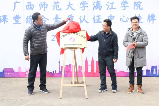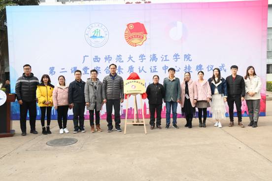 2019年11月28日下午,广西师范大学漓江学院第二课堂综合素质认证中心揭牌仪式在彰善楼大阶梯举行。我校党委副书记、纪委书记、副校长邓志平,教务与科研处副处长李明阳,学生事务部副部长林凤凤,学生事务部副部长兼校团委书记王瑞,校团委全体老师,各二级学院团总支书记、副书记及各组织学生代表参与此次揭牌仪式。
