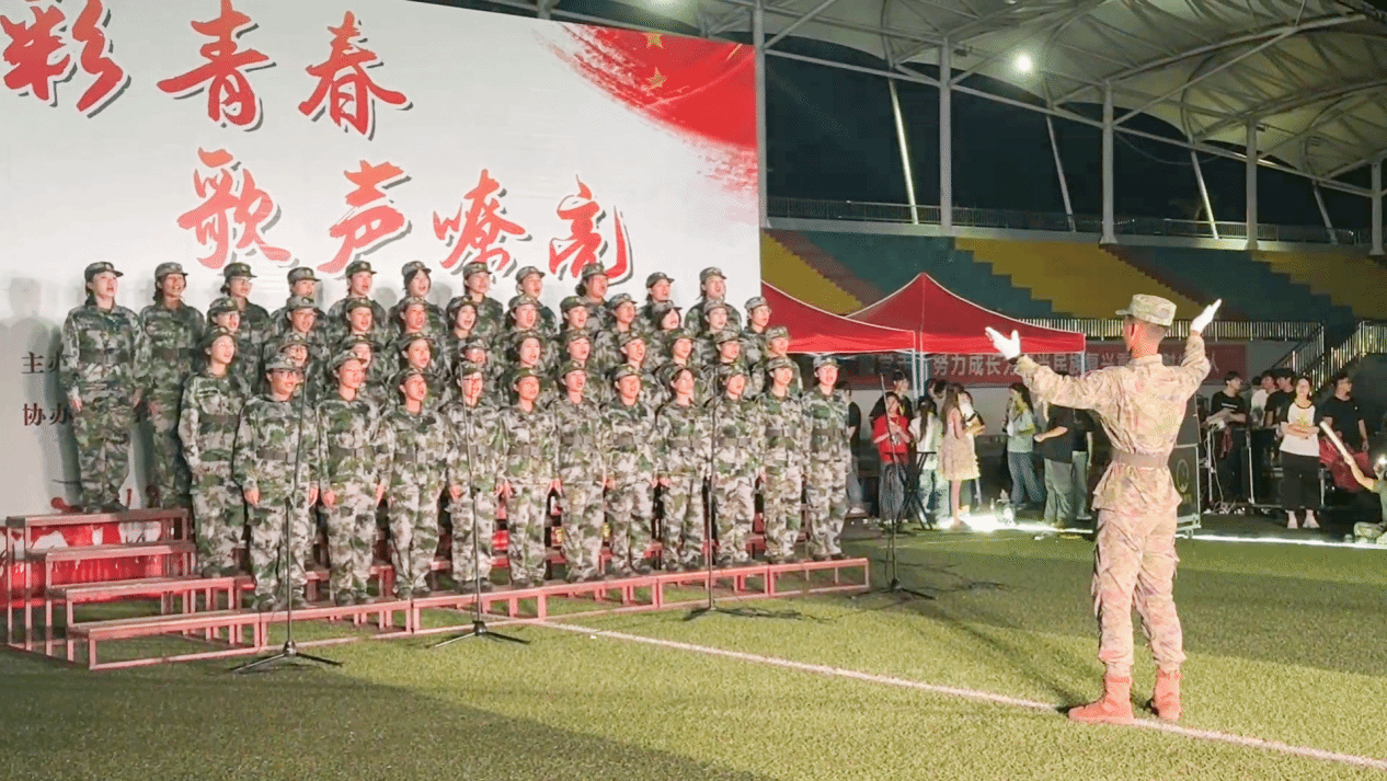 青春逐梦迷彩间,歌声嘹亮颂华章。为丰富2025级新生军训期间校园文化生活,9月16日晚,由校团委、校党委武装部和学生工作处(部)主办,校学生会承办的“迷彩青春,歌声嘹亮”拉歌联欢活动在田径场成功举办。校团委、校党委武装部、学生工作处(部)、党委宣传部负责人,承训部队全体成员,各二级学院分管学生工作副书记及全体军训新生参加了本次活动。