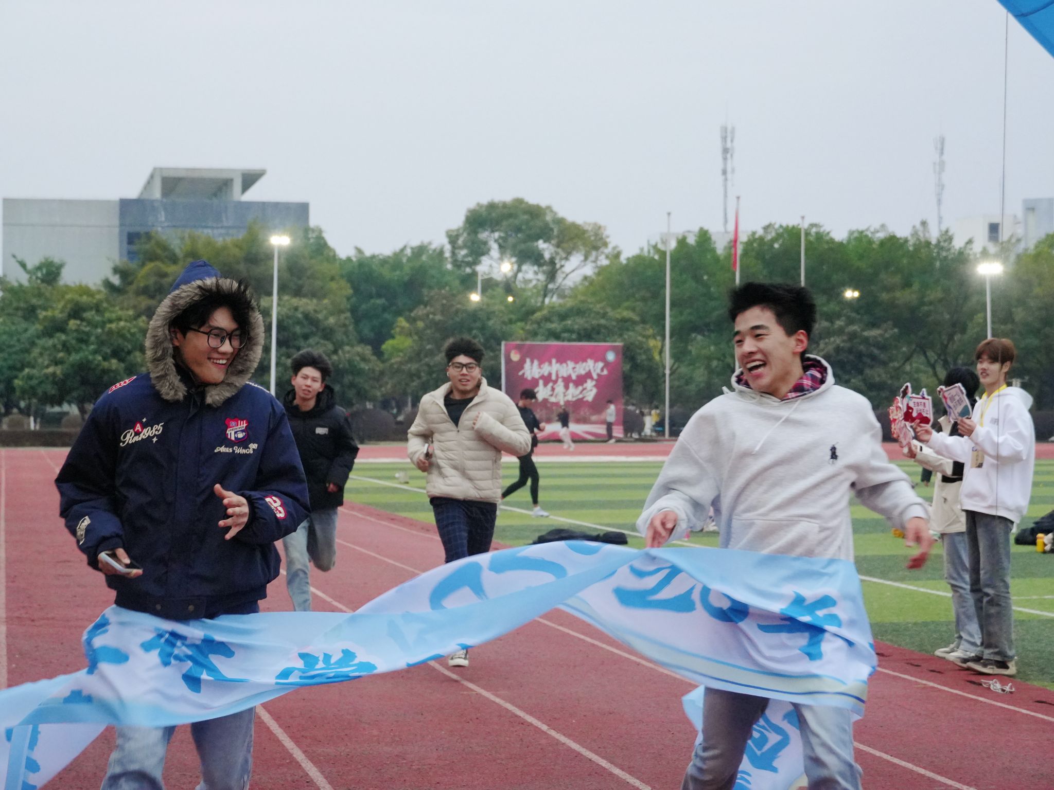 岁序常易,华章日新。当冬日暖阳斜照在田径场的绿茵上,师生们精神抖擞、整齐列队,站在岁末年初的交汇点上,满怀对过去的感念与对未来的憧憬。蒋毅宣布活动开幕并与各二级学院党总支副书记共同为活动鸣枪发令,清脆的枪声划破长空,校园欢乐跑正式起跑。同学迈开步伐,或奋力冲刺展现拼搏风采,或并肩前行彰显团队的互助与温情,寒风虽劲,却难挡师生高涨的热情,每一张脸庞都洋溢着自信与快乐,每一个脚步都充满着力量与希望,大家用奔跑的方式丈量校园的美丽,用热情的笑容迎接新年的到来。奔跑的身影穿梭于校园之中,跃动的步伐传递出蓬勃的朝气,诠释着桂院人强健体魄、坚韧意志与积极进取的精神品格。